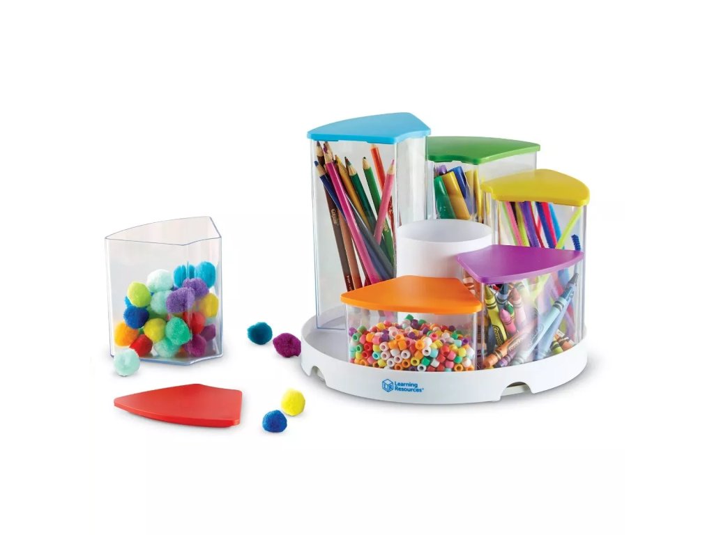Organizér pre prehľadné ukladanie a prenášanie tvorivých pomôcok. Súprava obsahuje 14 dielov, ktoré uľahčujú triedenie pier, ceruziek, lepiacich tyčiniek a ďalších nástrojov na výtvarnú činnosť.