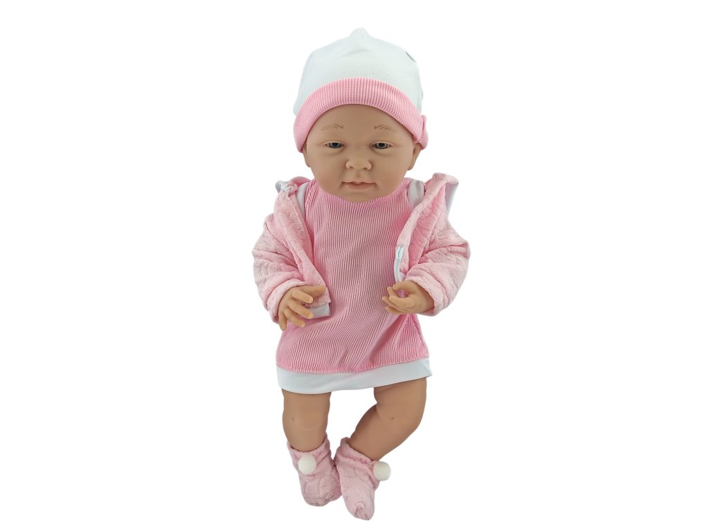 Bábika v ružových šatách s čiapočkou 35 cm MT1102