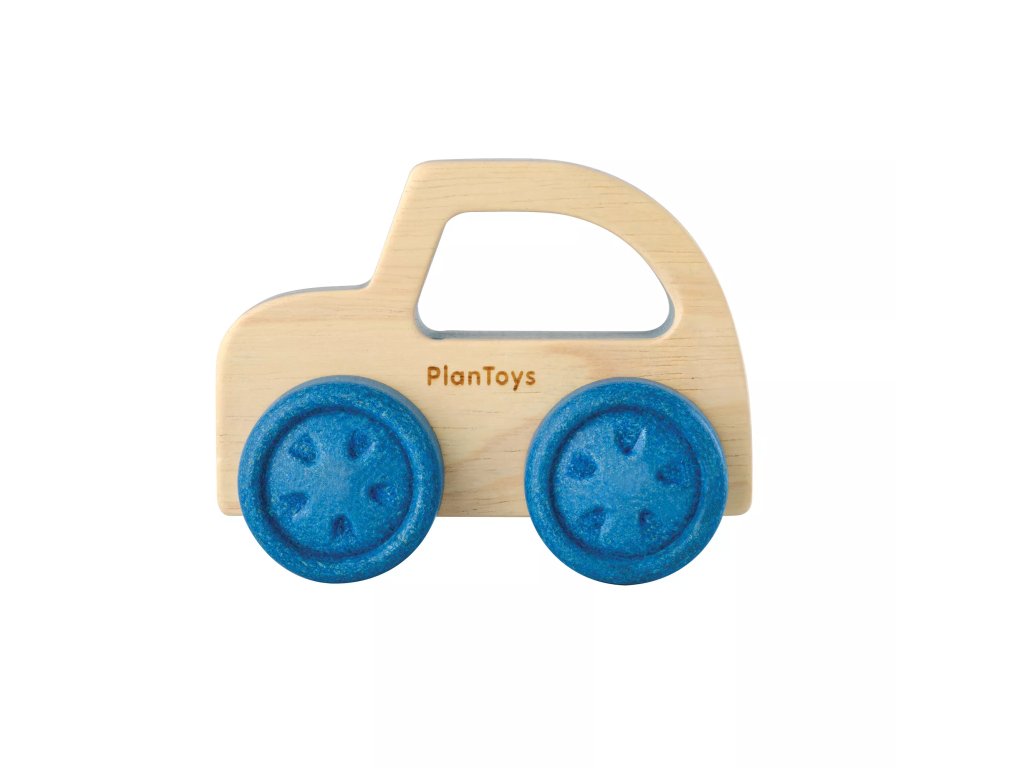 Malé drevené autíčko v modrom prevedení, navrhnuté pre malé deti. Podporuje imaginatívnu hru, jemnú motoriku a koncentráciu; dobre padne do detskej ruky, je pevné a ľahko sa tlačí.