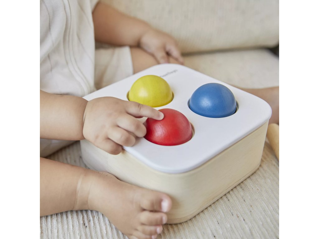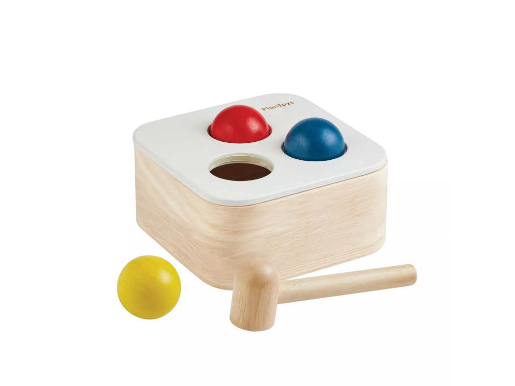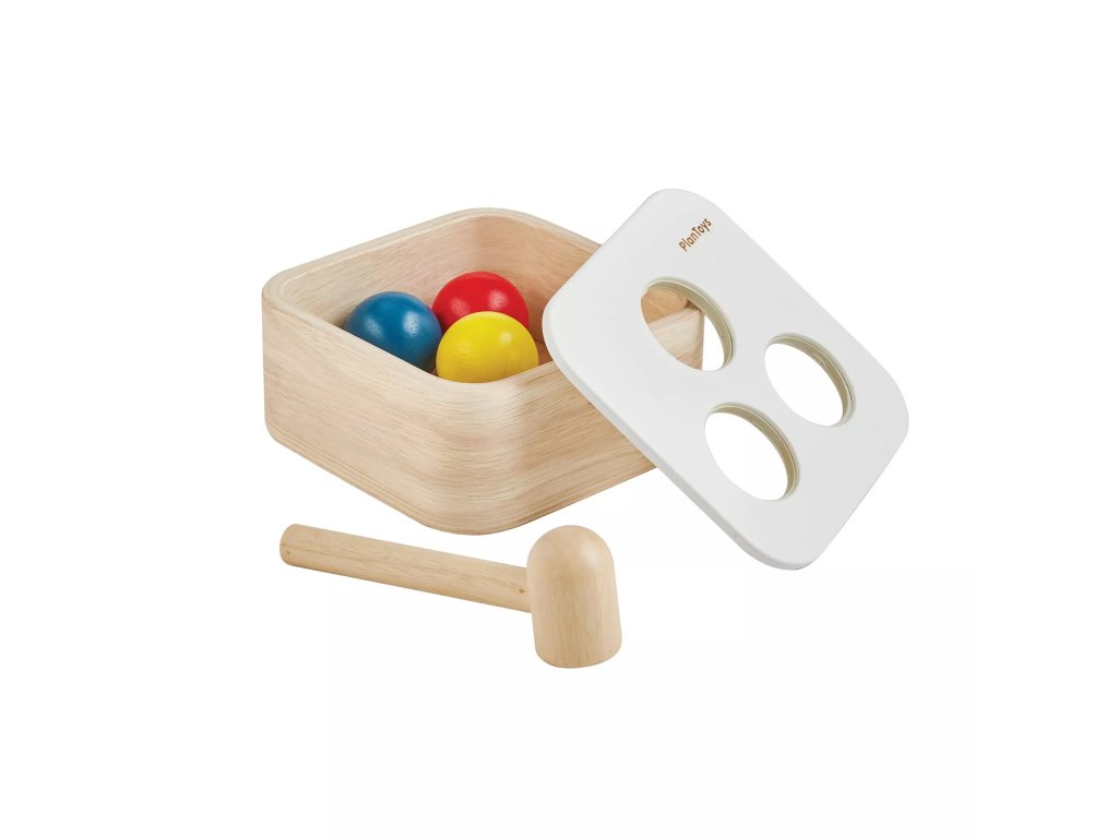 Hravá zatĺkačka, ktorá pomáha deťom objavovať príčinu a následok a rozvíjať jemnú motoriku. Drevené kladivko a tri farebné loptičky vytvárajú jednoduchú a prehľadnú aktivitu pre malé deti.