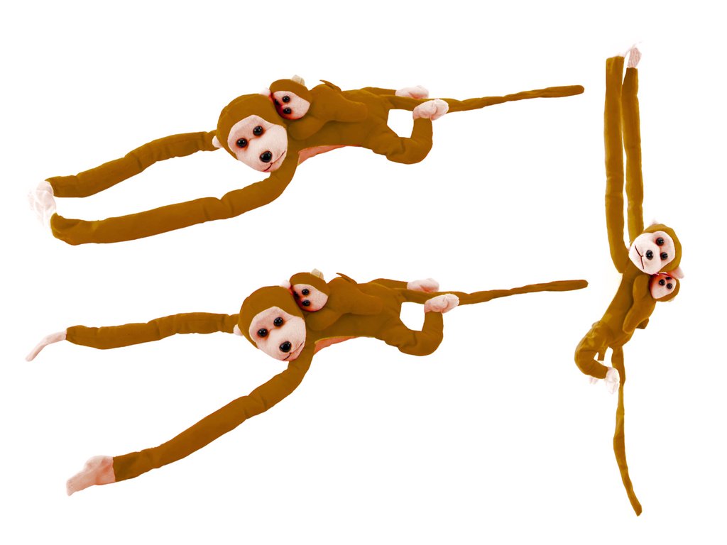 Súčasťou sú suché zipsy na rukách, ktoré umožňujú opičku a jej mláďa spojiť dohromady alebo ju pripevniť na rôzne predmety.