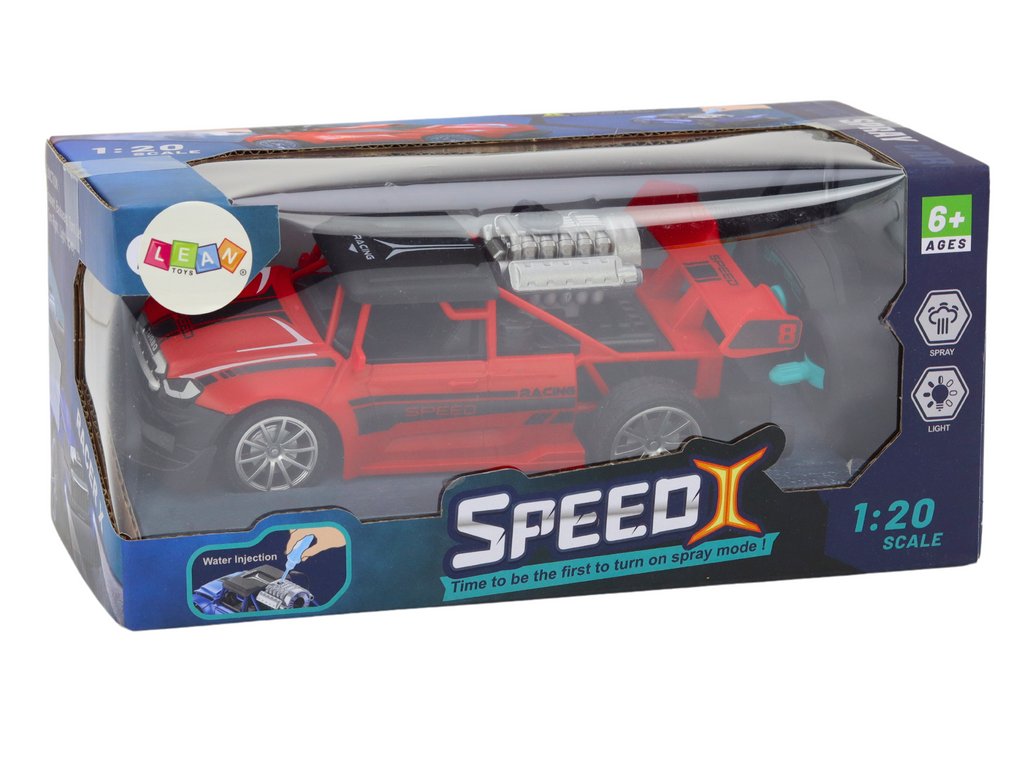 RC auto na diaľkové ovládanie 1:20 s dymovým efektom a svetlami červené