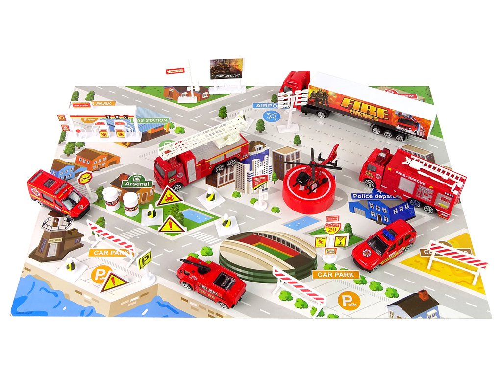 Sada Elektrických Autíčiek Hasičské Auto a Dopravné Značky - 30 Prvkov