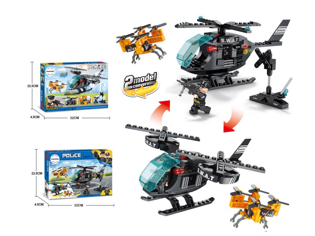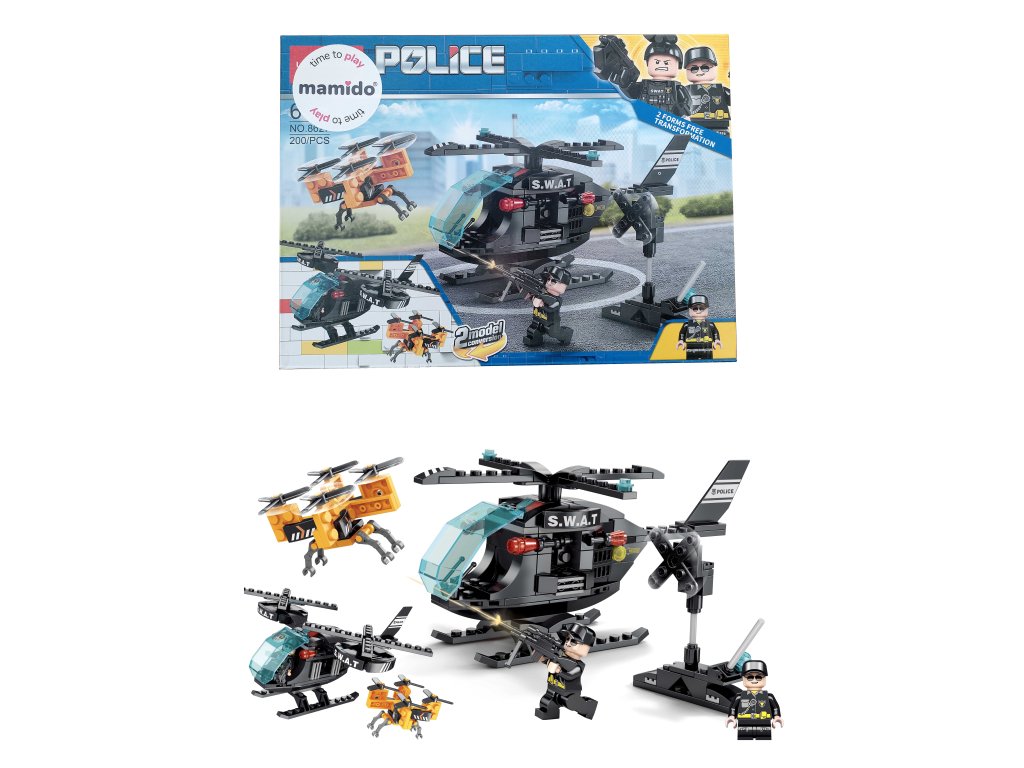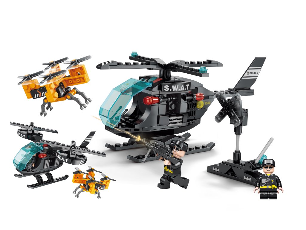 Stavebnica policajného vrtuľníka s dronom SWAT 2v1 200 dielikov MT1130