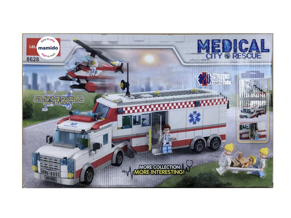 Stavebnica záchrannej stanice prináša deťom možnosť zažiť napínavé mestské záchranné akcie. Súprava ponúka kombináciu veľkej sanitky s otváracími časťami, pracovného záchranárskeho vrtuľníka a detailných figúrok, ktoré rozširujú možnosti hry. Deti môžu prevážať pacienta, privolať leteckú pomoc, ošetriť zraneného alebo nacvičovať rôzne záchranné scenáre.