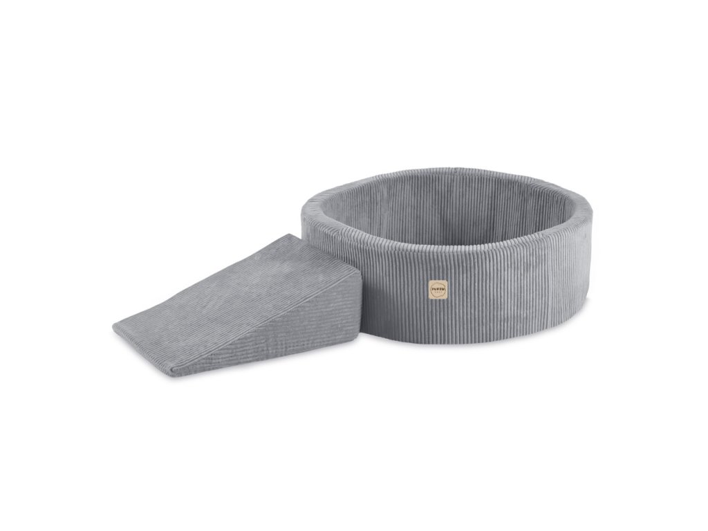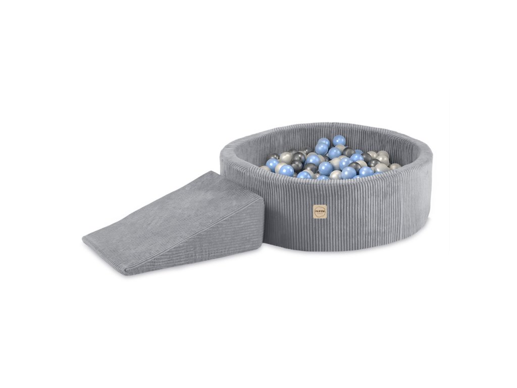 Suchý bazén s herným prvkom (trojuholník) 90 × 30 cm a 200 loptičkami, sivý