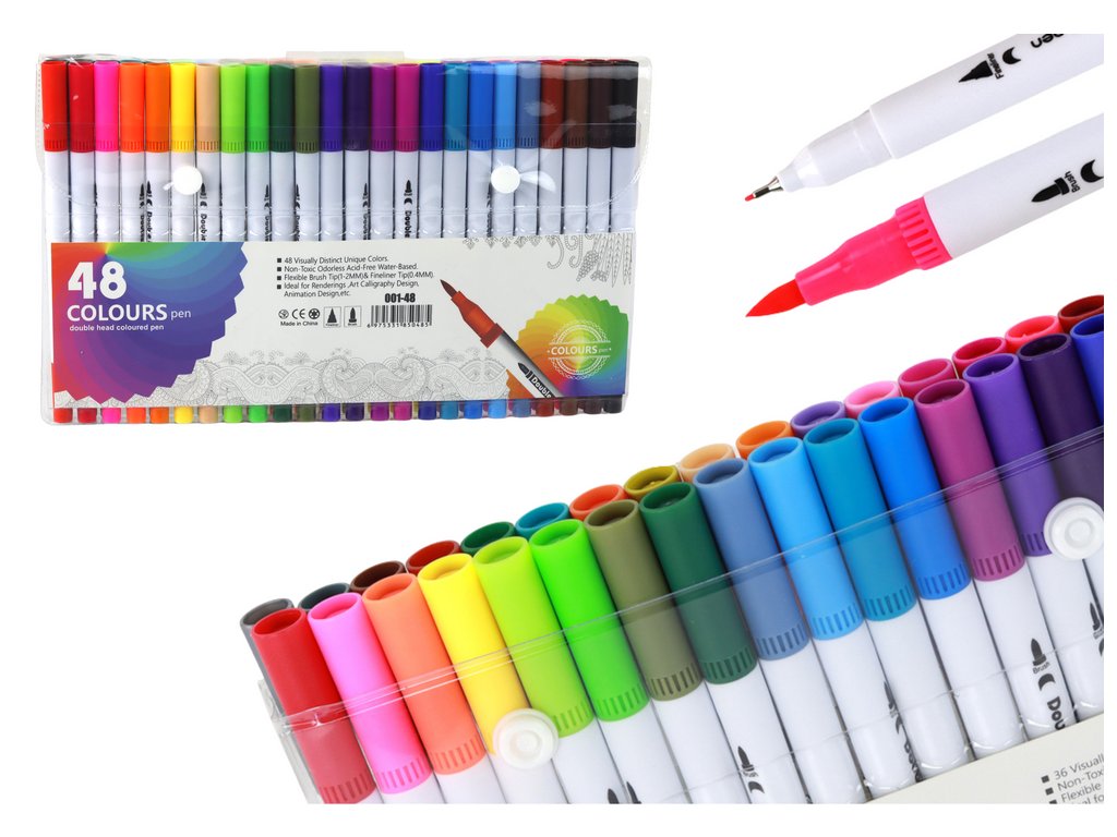 Súprava obojstranných fixiek 48 kusov rôznofarebné v organizéri