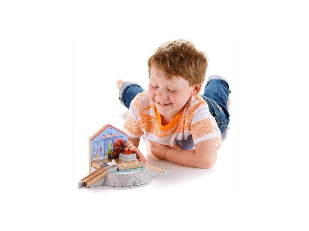 Rozprávka Mašinka Tomáš a jeho priatelia Lokomotíva s Kačenkou prinášajú zaujímavé dobrodružstvá lokomotív, ktoré nás učia dôležité hodnoty ako je zdvorilosť, nápomocnosť a slušnosť voči ostatným. Stačí stlačiť veľké červené tlačidlo v tvare suda a kačička sa rýchlo posunie po trati smerom k farme a späť k rybníku. Súčasťou súpravy je aj varovný znak pre prechod kačíc.