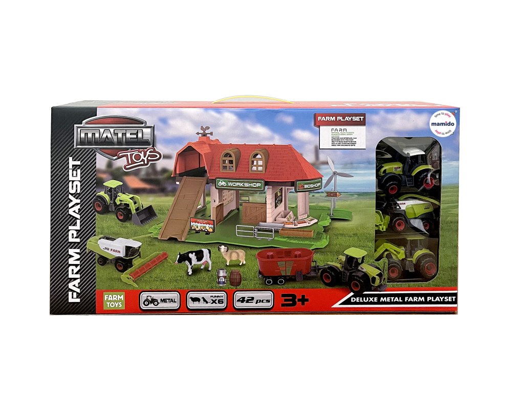 Rozsiahla farmárska herná súprava prináša deťom skvelú kombináciu kovových vozidiel, farmárskych budov a zvieracích figúrok. Dominantou je veľká farma s parkovacím priestorom a ďalšími prvkami, ktoré deťom umožnia vytvárať vlastné vidiecke príbehy. Kovové traktory a doplnky pridávajú hračke na odolnosti, zatiaľ čo figúrky hospodárskych zvierat zaisťujú realistický herný zážitok.