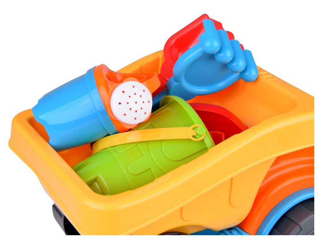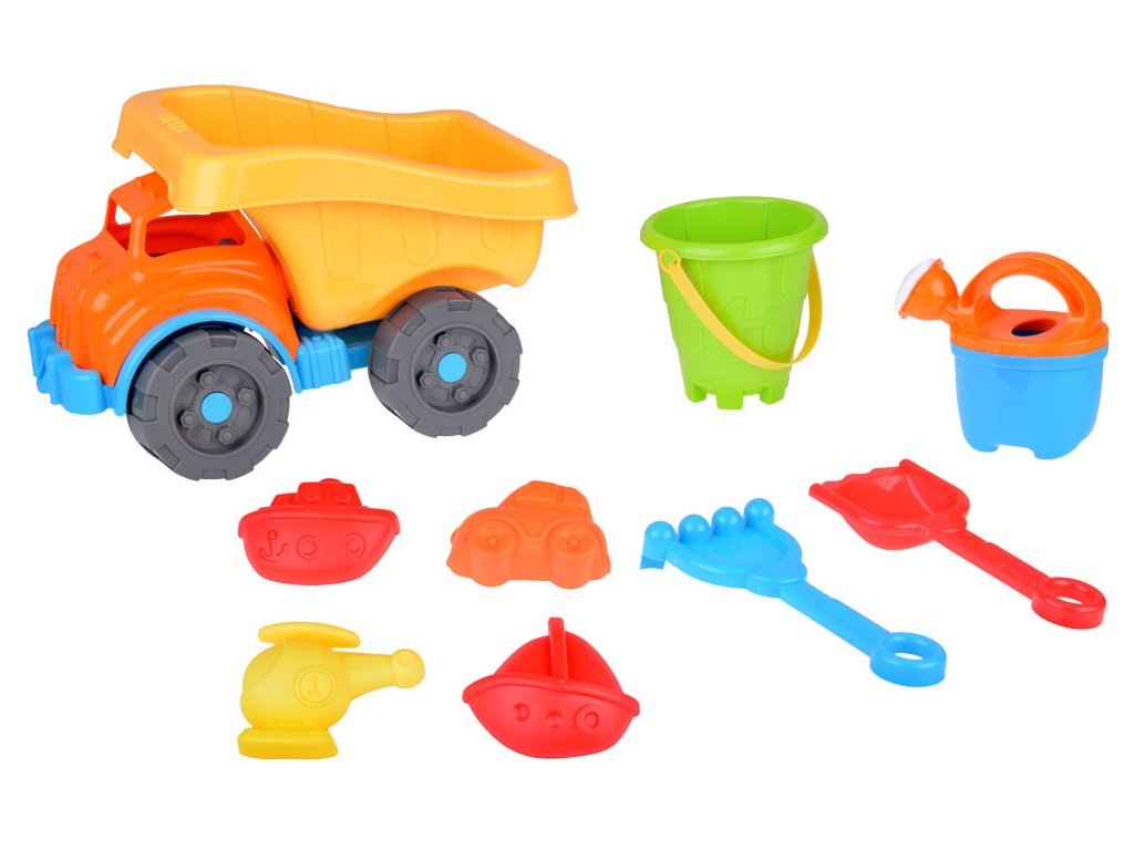 Veľká sada auto sklápačka na piesok, formičky, lopatka, hrabličky