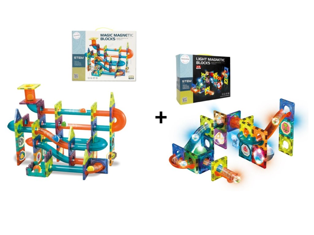 Veľká sada Magnetická stavebnica guličková dráha 96 dielov + Magnetická svietiaca stavebnica guličková dráha 49 dielov