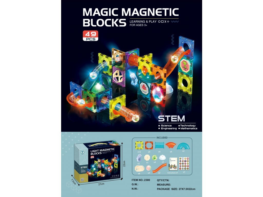 Magnetická svietiaca stavebnica 49 dielikov: