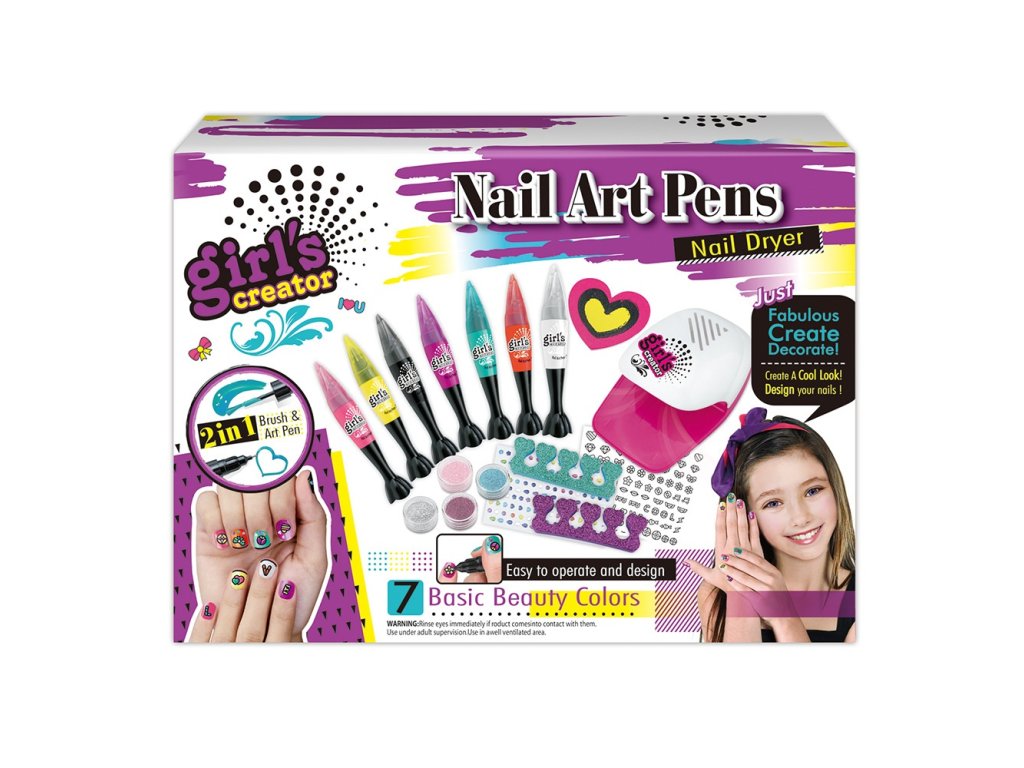 Po zarovnaní dĺžky a tvaru nechtov pomocou diamantového pilníka naneste na nechty vybranú farbu. Ďalším krokom je umiestniť ruku do špeciálnej lampy určenej na nechty. Po vložení držadla lampa svieti ako v skutočnom náprotivku. Fixy umožnia presné maľovanie vzorov, sú k dispozícii v dvoch farbách. Maľovaním vzorov dievča rozvíja precíznosť a tvorí svoj vlastný štýl. Nálepky, diamanty a trblietky dodajú originalitu a lesk.