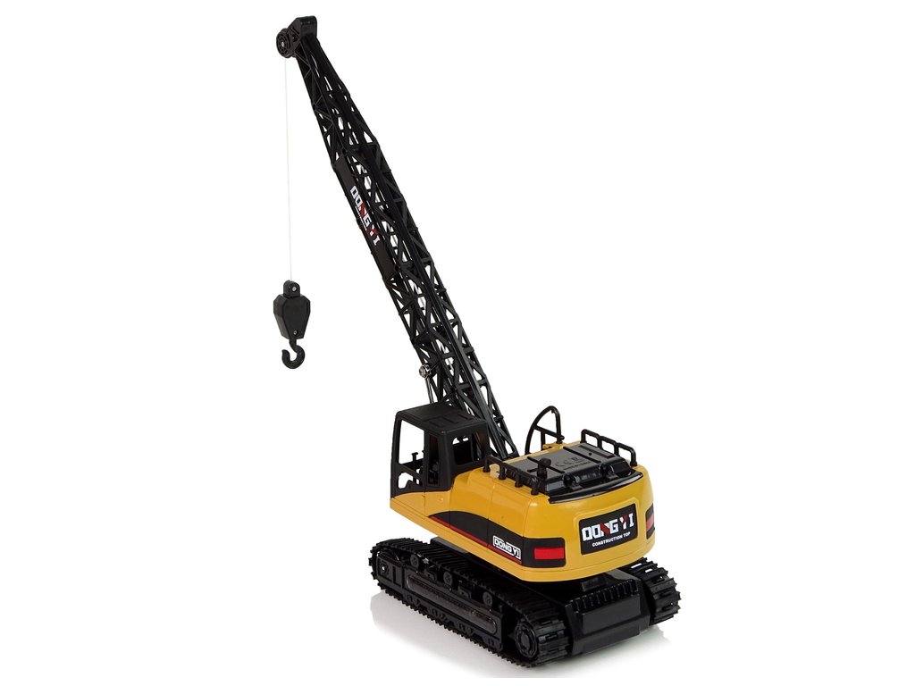 Robustné RC žeriav v mierke 1:12 nadchne všetkých malých staviteľov. Model je vybavený pásovým podvozkom, vďaka ktorému zvláda jazdu vpred aj vzad a ľahko sa otáča. Žeriav umožňuje manuálne otáčanie o 360° a vďaka diaľkovému ovládaniu je možné zdvíhať a spúšťať hák. Pre ešte realistickejší zážitok je vybavený farebnými svetlami a zvukovými efektmi. Nabíjanie je jednoduché pomocou USB kábla.