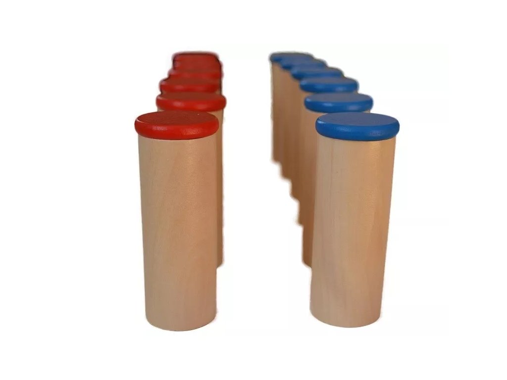 Každý valček je naplnený iným materiálom, preto pri zatrasení vydáva iný zvuk, od hlasného až po veľmi jemný. Zvuky v červenej sade zodpovedajú zvukom v modrej sade, čo umožňuje párovanie.